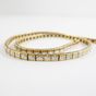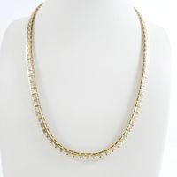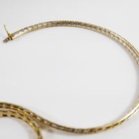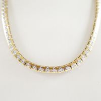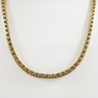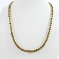Collier : en deux ors 750 mil. à maillons rectangulaires articulés partiellement sertis de diamants taille brillant (longueur : 46 cm environ) (largeur : 4,5 mm environ). 53,8 g. brut