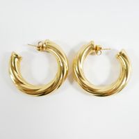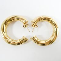 Paire de créoles : en or 750 mil. à décor torsadé, travail italien (diamètre : 4 cm environ) (épaisseur : 8 mm environ) (petits chocs). 10,7 g.