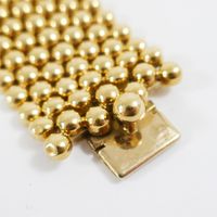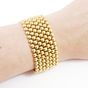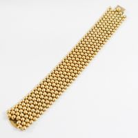 Bracelet manchette : en or 750 mil. À maille bille. Fermoir cliquet. (Largeur : 2,8 cme environ) (Longueur : 19,3 cm environ). 60,1 g.