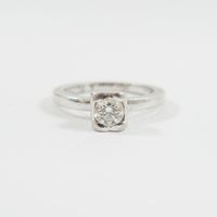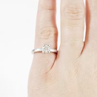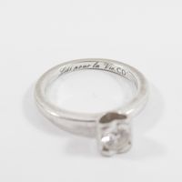 CHOPARD : Bague solitaire "Chopard for Love" : en platine 900 mil. À chaton "Cœur" orné d'un diamant diamanté d'environ 0,31 carat. (TDD : 49). Signée et numéroté. (Chiffré "Liés pour la vie"). 4,4 g. brut.