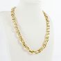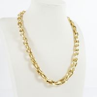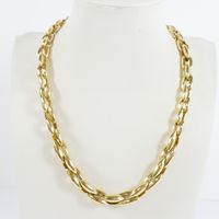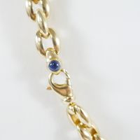 Collier : en or 750 mil. à maille grain de riz ronde en chute, deux petits cabochons de saphir au fermoir (longueur : 44 cm environ) (largeurs : de 8,7 à 10,4 mm environ). 58,5 g. brut
