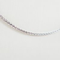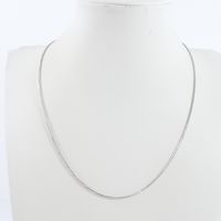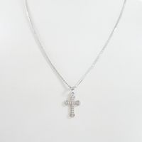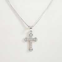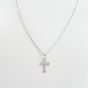Collier : en or gris 750 mil. À maille palmier retenant un pendentif croix en or gris 585 mil. Orné de diamants taille brillants. (Longueur : 2,4 cm environ) (Tour de cou : 41 cm environ). 4,5 g. brut. (Collier : 3,7 g. ; pendentif : 0,7 g. brut). 4,5 g. brut.