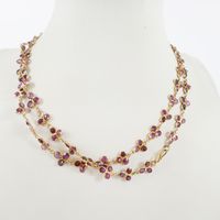 Collier : en or 585 mil. À maille à motif floral serti de petits saphirs roses. (Tour de cou : 69 cm environ). 16,8 g. brut.