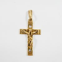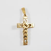 Pendentif "Croix" : en or 750 mil. Travail portugais. (Longueur : 5 cm environ). 7,2 g.