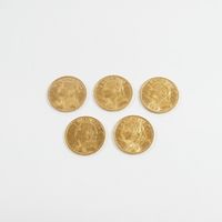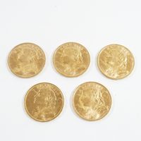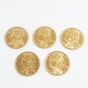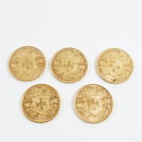 5 pièces de 20 frcs Suisse en or 900 mil. 32,3 g.