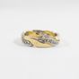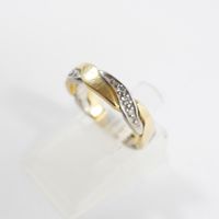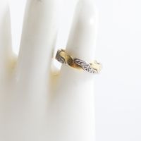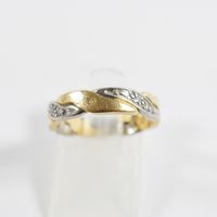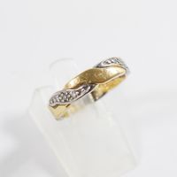 Anneau en ors de couleur 750 mil figurant une tresse rehaussée de diamants 8/8 (chiffré) (Larg : 4 mm ; TDD : 50). 4,3 g brut.