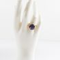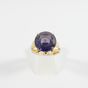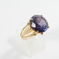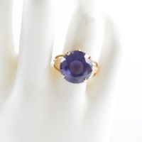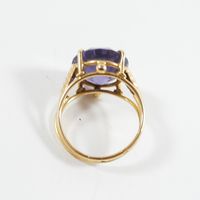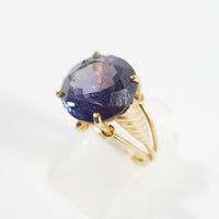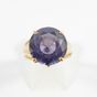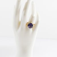 Bague en fils d'or 750 mil centrée d'une pierre violette (Diam pierre : 1,4 cm environ ; TDD : 56,5). 6,3 g brut.