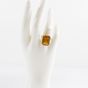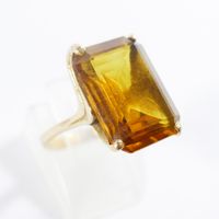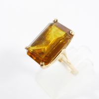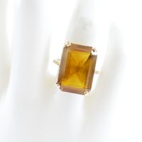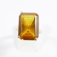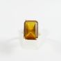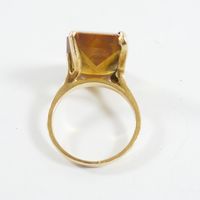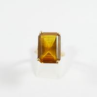 Bague en or 750 mil ornée d'une pierre imitation orange rectangulaire (Dim pierre : 1,8 x 1,3 cm environ) (serti à revoir) (TDD : 54). 7,4 g brut.