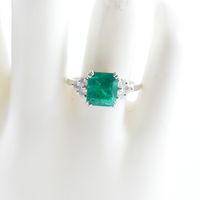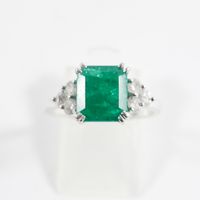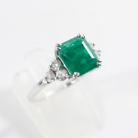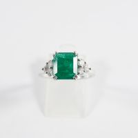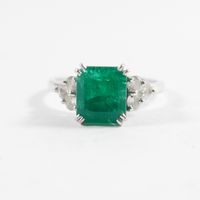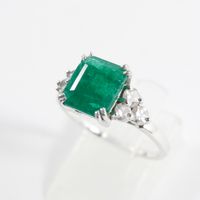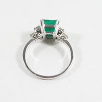 Bague en or gris 750 mil centrée d'une émeraude ég
