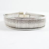Bracelet manchette en or gris 750 mil guilloché (Larg : 1,6 cm ; Long : 18,5 cm). 38,4 g.