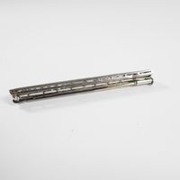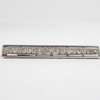 Broche-barette en platine 850 mil centrée d'une ligne de diamants TA en chute (Larg : 7 mm ; Long : 5,8 cm). 8,7 g brut.