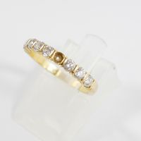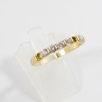 Demi-alliance en or 750 mil ornée d'une ligne de diamants (environ 0,50 ct au total) (manque 2 pierres) (larg : 3 mm ; TDD : 52). 2,6 g brut.