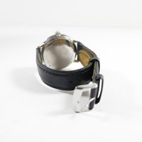 Montre en acier sur bracelet cuir usagé, boîtier r