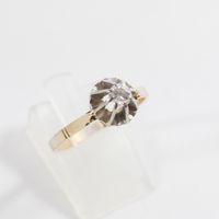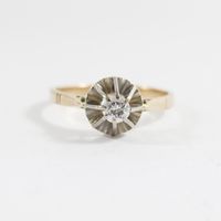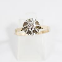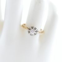 Solitaire en ors de couleur 750 mil orné d'un diamant (environ 0,20 ct) (TDD : 57,5). 2,5 g brut.