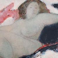 Alain BONNEFOIT (né en 1937) : "Béa" Huile sur panneau. Signée en bas à droite, datée 03 et titrée au dos. Dimensions : 23 x 28 cm. (Encadrée)