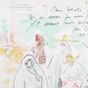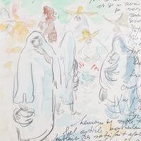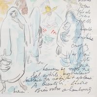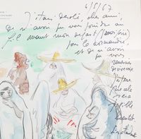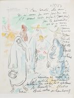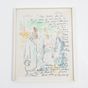 André HAMBOURG (1909-1999) : "Fantaisie marocaine" Dessin au crayon noir aquarellé et lettre autographe adressée à André BRISSAUD (1920-1996) sur papier à en-tête "La Thillaye Englesqueville-en-Auge" contrecollé sur carton. Dessin ayant servi à illustrer "La rose et le sable " de Henry de Montherlant. Signé et daté "4/5/67". Dimensions : 26,5 x 21 cm. (Pliure, insolé en haut à droite) (Encadré)