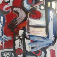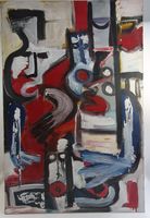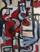 CABROL (Ecole contemporaine) : "C'est normal" Huile sur toile. Signée, datée 94 et titrée au dos. Dimensions : 120 x 80 cm. (Brûlure su le chassis) (Non encadrée)