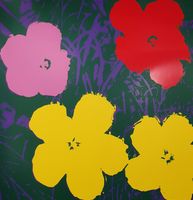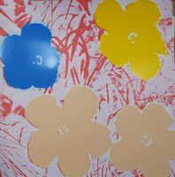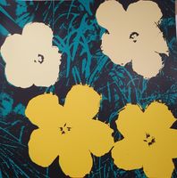 D'après Andy WARHOL (1928-1987) : "Sunday Flower 65" Série de 10 sérigraphies sur papier cartonné. Tampon au verso avec la mention « fill in your own signature » et « published by Sunday B. Morning » à l’encre bleue. Dimensions : 90 x 90 cm. (Non encadrées)