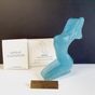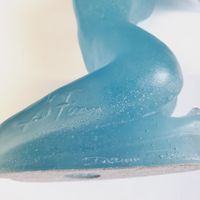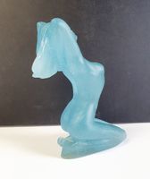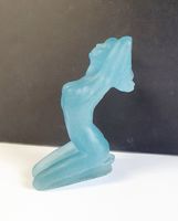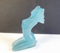 DAUM & Sheila FINN (née en 1929) : "Natasha" Epreuve en pâte de verre bleue figurant une jeune femme nue agenouillée. Signée S. Finn et Daum France", numérotée 168/250 sous la base. Hauteur : 17,5 cm. Avec son Certificat d'authenticité et un cartel de présentation.