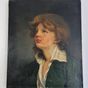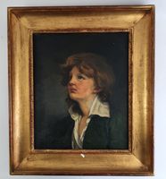 Ecole française du XIXème siècle : dans le goût de Jean-Baptiste GREUZE (1725-1805) "Jeune garçon à la chemise blanche" Huile sur toile. Non signée. Dimensions : 46,5 x 38 cm. (Accidents, restaurations) (Encadrée, à refixer)