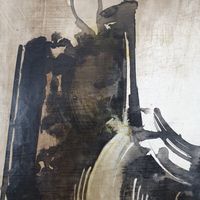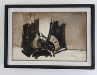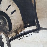 Gianni BERTINI (1922-2010) : "Rhadamiste", 1956 Technique mixte sur papier contrecollée sur toile. Signée en bas à droite et datée 56, contresignée, titrée et datée au dos. Dimensions : 22 x 33 cm. (Encadrée)