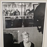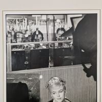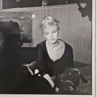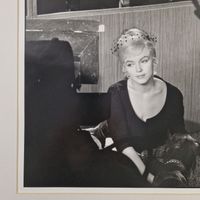 Henri CARTIER-BRESSON (1908-2004) : "Marilyn Monroe sur le tournage du film de John Houston « The Misfits », Nevada, Etats-Unis, 1960" Tirage argentique sur papier baryté, réalisé vers 2000-2003, monté avec Marie-Louise, dans un cadre désolidarisé ( verre brisé) Image : 44,5 x 30 cm Feuille : 50 x 40 cm. Provenance : Fondation Henri Cartier-Bresson », vente Christie’s « HCB : 100 photographies », du 11 novembre 2011 à Paris (lot n°72) (Non encadré)