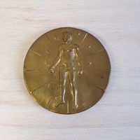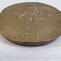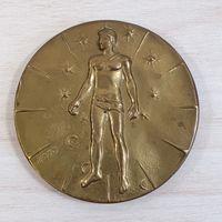 Igor MITORAJ (1944-2014) : "Articulations - Expérimentation multicentrique" Médaille uniface en bronze patiné. Signée en bas à gauche et numérotée au revers I071/500, titré et cachet Pfizer 83-84. Diamètre : 9,2 cm. (Pas de certificat)