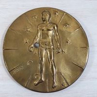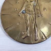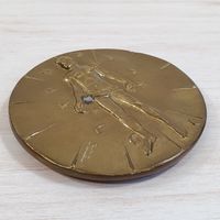 Igor MITORAJ (1944-2014) : "Articulations - Expérimentation multicentrique" Médaille uniface en bronze patiné. Signée en bas à gauche et numérotée au revers K293/500, titré et cachet Pfizer 83-84. Diamètre : 9,2 cm. Avec son certificat Artcurial signé par l'artiste et son écrin. (Oxydations)