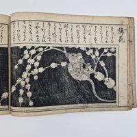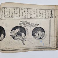 JAPON, période Edo, XVIIIème siècle : Shunboku Ooka (1680-1763) dit HAYATO Ensemble de trois volumes issus du "Ranma zushiki"se traduisant par "Conception pour traverses" illustrant différents modèles de dessins sur les animaux et les fleurs. Illustrations gravées sur bois en noir, recueils publiés par Suharaya Mohei et Onogi Ichibei. Dimensions : 18,5 x 26 cm. (Taches, pliures, petits manques)