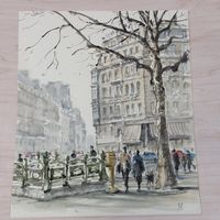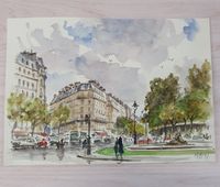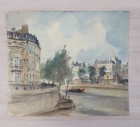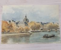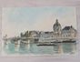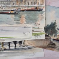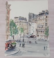 Michel HERTZ (1933-2022) : "Vues parisiennes (Notre Dame, le Pont des Arts et l'Institut, l'Ile Saint Louis, boulevards animés)" Six aquarelles, une signée et quatre monogrammées avec l'ancre de marine. Dimensions : différents formats de 16 x 18,5 cm à 28 x 40 cm. (Non encadrées)