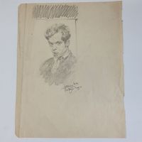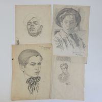 Nicolas STERNBERG (1901-c.1960) : "Portraits d'homme" (Autoportraits?) Quatre études au fusain sur papier. Trois signés et deux portant le cachet du monogramme, deux datés 1923. Dimensions : de 31 x 23,5 cm à 24x 19 cm. (Pliures) (Non encadrés)