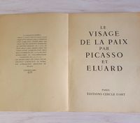 PICASSO (Pablo) - ÉLUARD (Paul) : « Le visage de la Paix. », Paris, Éditions Cercle d'Art, Octobre 1951. In-4 broché, couverture à rabats, illustré de 29 lithographies originales de Pablo Picasso, tirées sur les presses de Mourlot, avec un texte de Paul Éluard. Exemplaire n°620/2100 sur Vélin Offset Supérieur. (Petites déchirures sur le cartonnage, rousseurs éparses, 1 feuillet détaché)