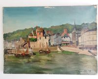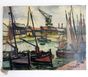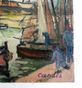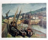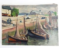 Roger-Lucien CANDES (1907-1992) : "Bateaux à quais" Quatre huiles sur toiles. Signées en bas à gauche et en bas à droite, une datée 47 et deux datées 49. Dimensions : 33 x 46 cm, 27 x 35 cm et 24 x 33 cm. (Petits manques de matière) (Non encadrées)