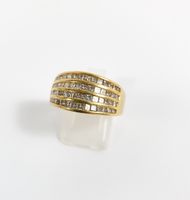 Bague bandeau : en or gris 750 mil. ornée de 4 lignes de diamants taille princesse. (TDD : 59). 6,4 g. brut.
