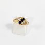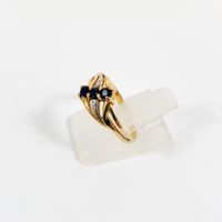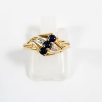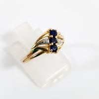 Bague jonc : à godrons en or 750 mil. orné de 3 saphirs taille ovale en serti griffes. (TDD : 52). 1,6 g brut.