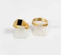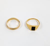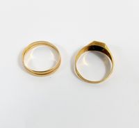 Chevalière et alliance : en or 750 mil. (onyx) (TDD : 55 et 56,5) (Déformation). 4,1 g. brut.