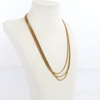 Collier : en or 750 mil. composé de 3 rangs à fine maille palmier, fermoir cliquet et huit de sécurité. (Longueur : 43 cm environ). 30,9 g.