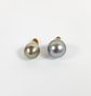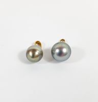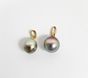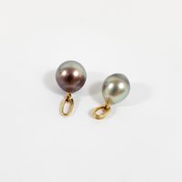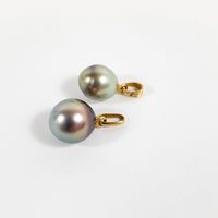 Deux pendentifs, chacun orné d’une perle de culture grise (diamètres : 9,8 et 11,4 mm environ), bélières en or 750 mil. 4,4 g. brut.
