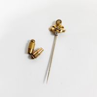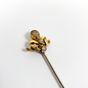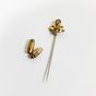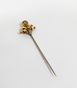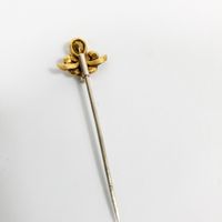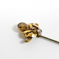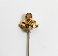 Epingle : en or 750 mil. à motif d'un nœud de ruban serti d'une pierre fine jaune et de roses. 3,4 g. brut. Avec 2 systèmes en métal.