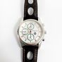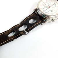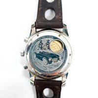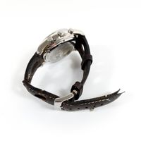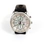 FREDERIQUE CONSTANT "Healey" Chronographe : Montre- bracelet d'homme en acier, boîtier rond (diamètre : 43 mm), cadran argenté à 3 compteurs secondaires, guichet dateur à 6H, sur bracelet en cuir usagé à boucle ardillon siglée, édition limitée, mouvement automatique. (Rayures, bracelet accidenté).