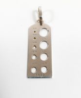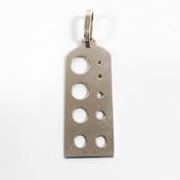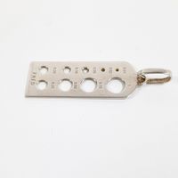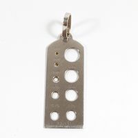 Pendentif FRED : "Calibre à pierre" en or gris 750 mil. Signé et numéroté. (Manque le diamant, rayures) (Dimensions avec bélière : 5 x 1,6 cm environ). 7 g.