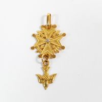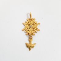 Pendentif Saint-Esprit en or 750 mil. ciselé centré d'un petit diamant 8/8. (dimensions : 3,3 x 1,6 cm environ). 1,7 g.