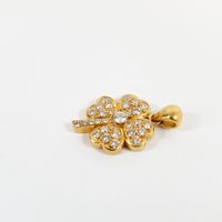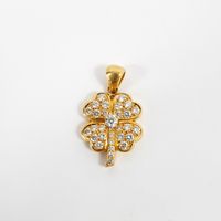 Pendentif Trèfle à quatre feuilles : en or 750 mil. centré d'un diamant brillanté de 0,20 carat environ, les pétales et la tige pavés de diamants brillantés. (Hauteur avec bélière : 2,8 cm environ). 6,9 g. brut.