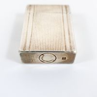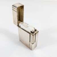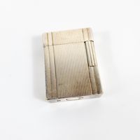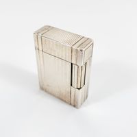 ST DUPONT : Briquet en métal argenté rainuré et godrons. Signé et numéroté. (Dimensions : 4,7 cm x 3,5 cm environ) (Usures).