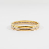 CARTIER, modèle Vendôme : Alliance trois ors 750 mil. Signée et numérotée. (TDD : 66). (Importante déformation). 5,9 g.