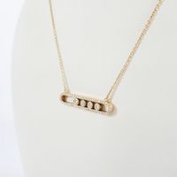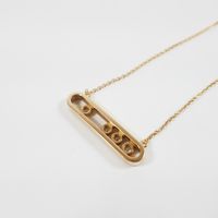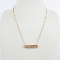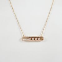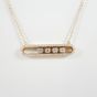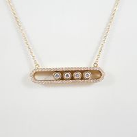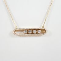 Dans le goût de MESSIKA : Collier en or 750 mil. à fine maille forçat ronde retenant un motif oblong orné de 4 diamants mobiles dans un entourage de diamants brillantés. (Longueur collier : 42 cm ; Longueur motif : 3,3 cm). 7,7 g. brut