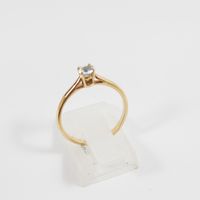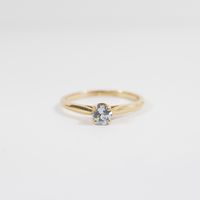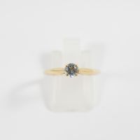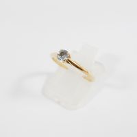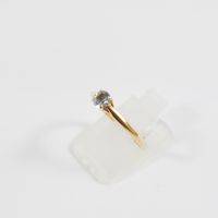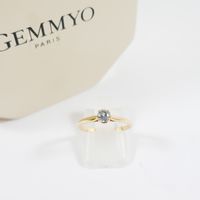 GEMMYO, modèle Baby Lady : Bague en or rose 750 mil. sertie d'une aigue-marine. Non signée. (TDD : 52). (Diamètre pierre : 4 mm). (Chiffrée). 1,8 g. brut. Avec écrin et attestation Gemmyo.