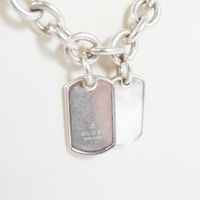 GUCCI, modèle Dog Tag : Collier en argent 925 mil. à maille forçat ronde retenant deux plaques. Signé. 55,7 g.
