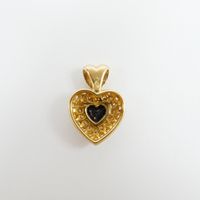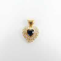 Pendentif Cœur en or 750 mil. pavé de diamants brillantés et centré d'un saphir taille cœur de 0,40 carat environ en serti clos. Travail français. (Haut. 1,2 cm environ). 3 g. brut