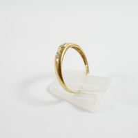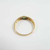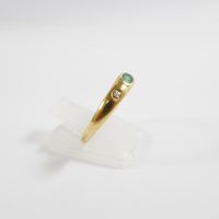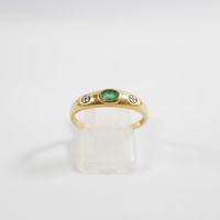 Bague jonc : en or 750 mil. centrée d'une émeraude ovale entre deux diamants taille 8/8 (TDD : 57) (largeur : 4,1 mm environ) (égrisures). 1,8 g. brut